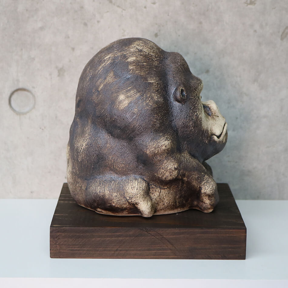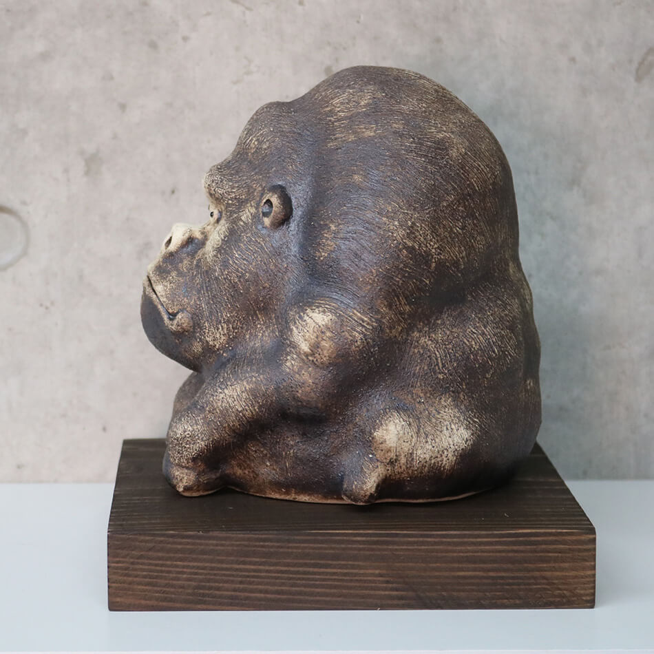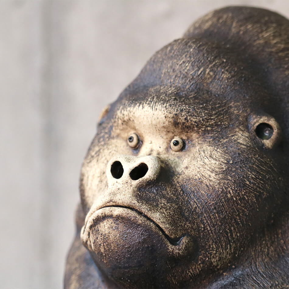 ゴリラ オブジェ陶器 淵脇克仁作 陶仁 鹿児島 インテリア デザイン 彫刻 日本製 手作り アート サル 猿 動物 彫刻 オブジェ 陶器 アニマルオブジェ